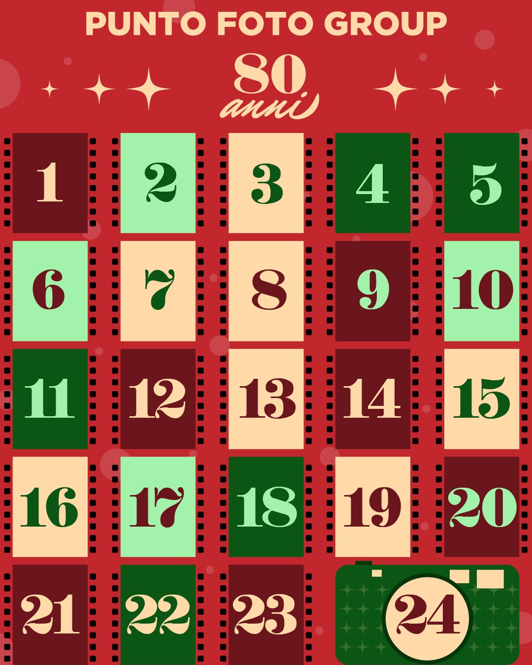 A partire dal 1 Dicembre apriremo giornalmente le caselle del calendario dell'Avvento con 2 o 3 offerte del giorno, che potranno essere ordinate singolarmente o in abbinamento durante tutto il periodo festivo, salvo esaurimento scorte. Fino al 24 Dicembre scopriremo 79 prodotti in offerta, pari agli anni di attività della KARL BIELSER - Milano. Per anticipare l'Ottantesimo anniversario nel 2026, 79 + 1, per ogni ordine, nel pacco, oppure al banco, troverete una sorpresa. Indicheremo i link al nostro sito, ai prodotti in evidenza, nei post giornalieri. CON I PIU' CORDIALI AUGURI DI BUONE FESTE dalla squadra del Punto Foto Group by KARL BIELSER s.a.s. - Milano